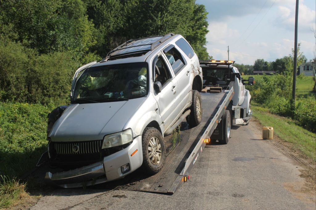 On August 17, 2025, a single-vehicle rollover accident occurred in Fulton County, Indiana, involving a Mercury Mariner SUV. The driver was missing, prompting drone searches and a German Shepherd’s assistance. Emergency responders, including local fire departments and EMS, were involved. The vehicle was towed away by Tony’s City Wide Towing.